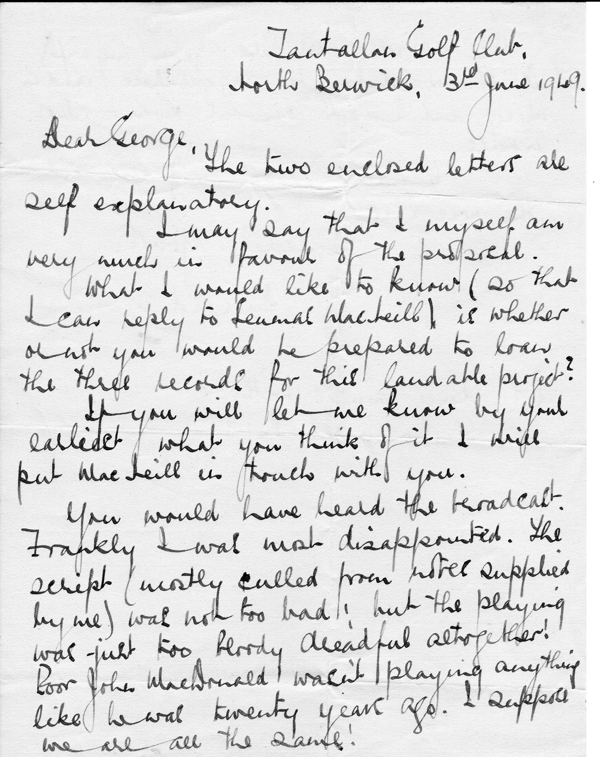 What I would like to know (so that I can reply to Seumas MacNeill) is whether or not you would be prepared to loan the three records for this laudable project?